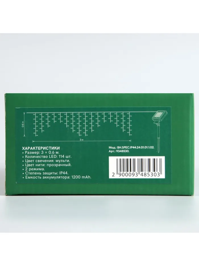 Гирлянда «Бахрома», 3×0.6 м, уличная, IP44, 114 LED, 8 режимов, солнечная батарея, прозрачная нить, свечение мульти — Характеристики