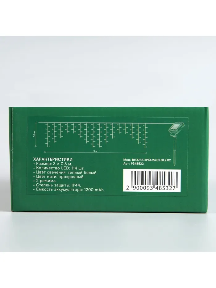 Гирлянда «Бахрома», 3×0.6 м, уличная, IP44, 114 LED, 8 режимов, солнечная батарея, прозрачная нить, свечение тёплое белое — Характеристики