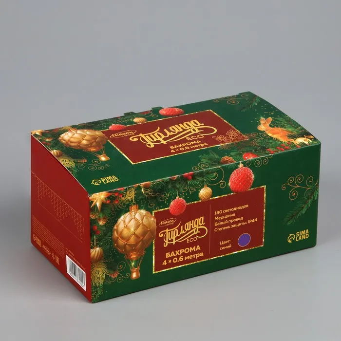 Гирлянда «Бахрома» 4 × 0.6 м, IP44, белая нить, 180 LED, свечение синее, мерцание белым, 220 В — Характеристики