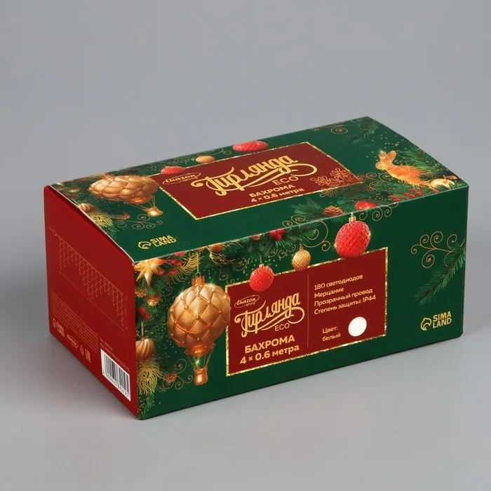 Гирлянда «Бахрома» 4 × 0.6 м, IP44, прозрачная нить, 180 LED, свечение белое, мерцание белым, 220 В — Характеристики