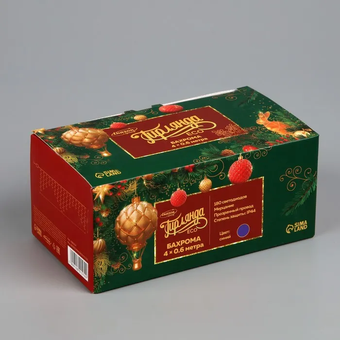 Гирлянда «Бахрома» 4 × 0.6 м, IP44, прозрачная нить, 180 LED, свечение синее, мерцание белым, 220 В — Характеристики