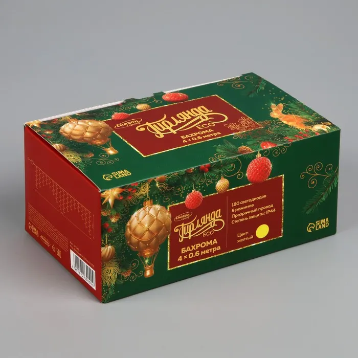 Гирлянда «Бахрома» 4 × 0.6 м, IP44, прозрачная нить, 180 LED, свечение жёлтое, 8 режимов, 220 В — Характеристики