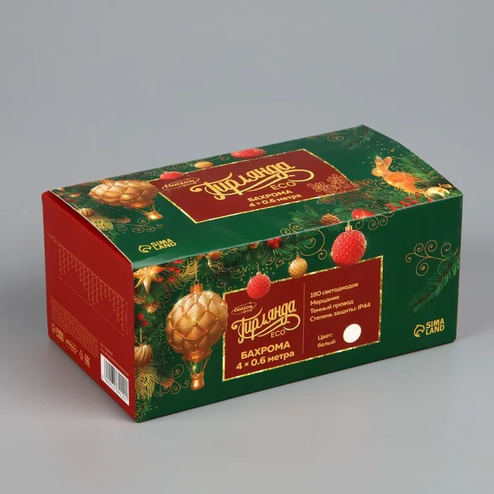 Гирлянда «Бахрома» 4 × 0.6 м, IP44, тёмная нить, 180 LED, свечение белое, мерцание белым, 220 В — Характеристики