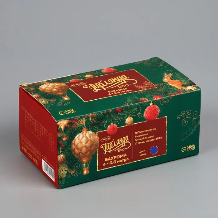 Гирлянда «Бахрома» 4 × 0.6 м, IP44, тёмная нить, 180 LED, свечение синее, мерцание белым, 220 В — Характеристики