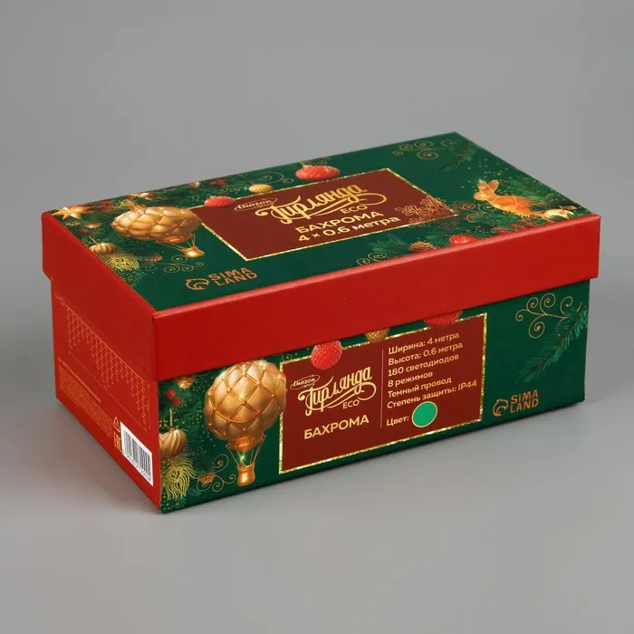 Гирлянда «Бахрома» 4 × 0.6 м, IP44, тёмная нить, 180 LED, свечение зелёное, 8 режимов, 220 В — Характеристики