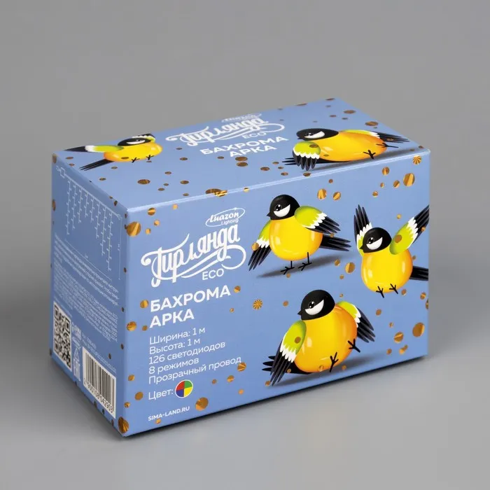 Гирлянда «Бахрома-арка» 1 × 1 м, IP20, прозрачная нить, 126 LED, свечение мульти, 8 режимов, 220 В — Характеристики