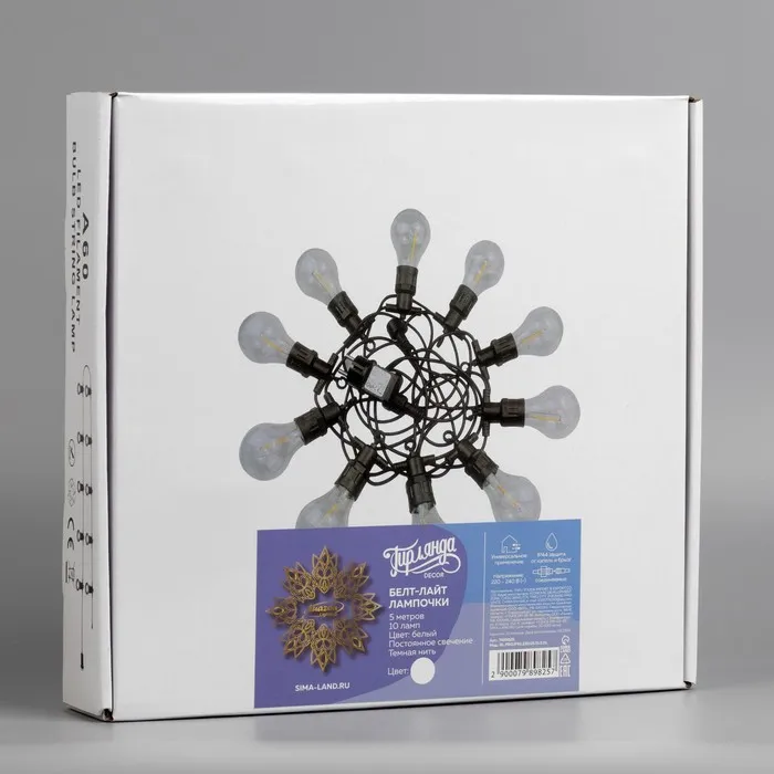 Гирлянда «Белт-лайт» 5 м с насадками «Лампочки», IP44, УМС, тёмная нить, 10 LED, свечение белое, 220 В — Характеристики
