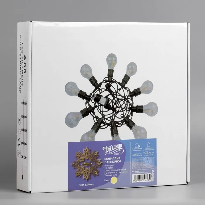 Гирлянда «Белт-лайт» 5 м с насадками «Лампочки», IP44, УМС, тёмная нить, 10 LED, свечение тёплое белое, 220 В — Характеристики