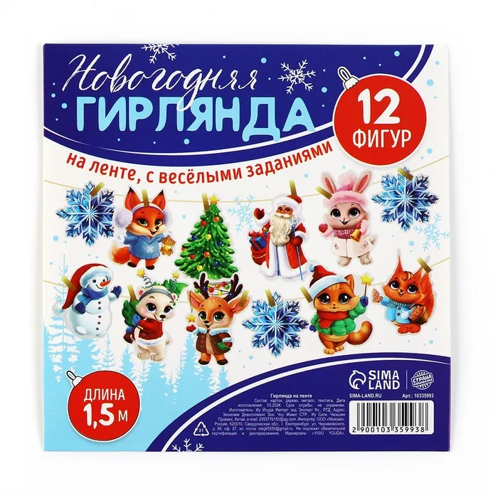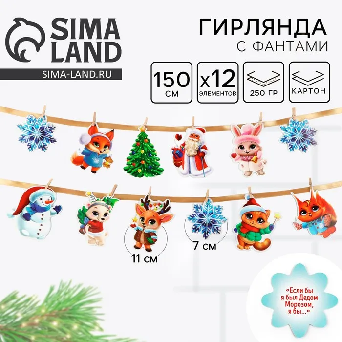 Гирлянда бумажная на ленте с фантами «Новогодняя», длина 150 см — Характеристики