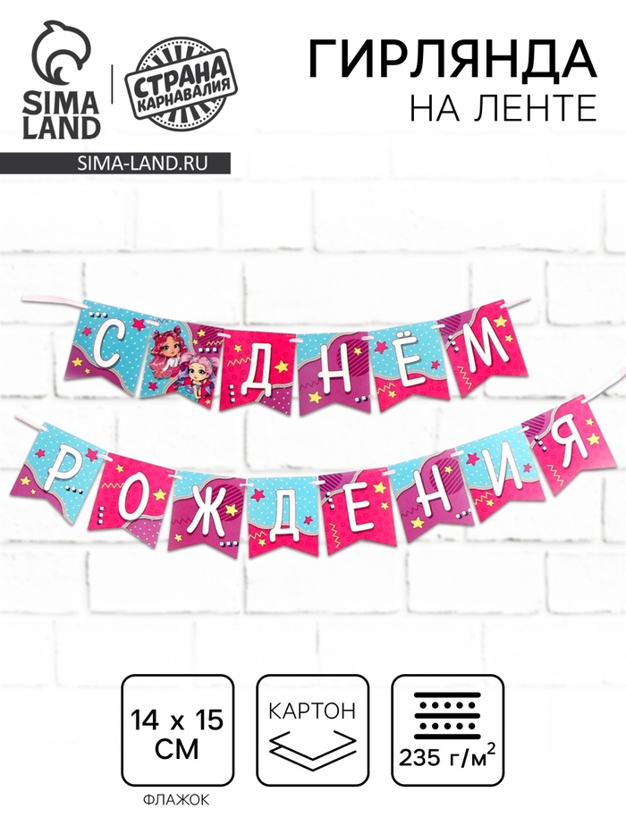 Гирлянда на ленте «Поздравляем», длина 132 см, Союзмультфильм
