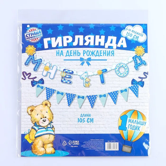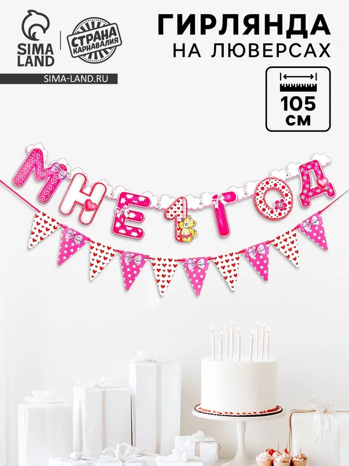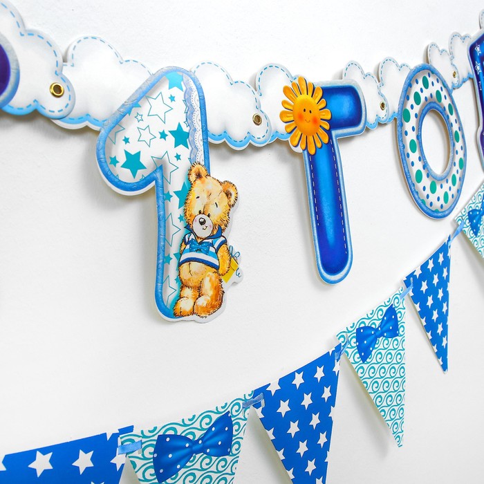 Гирлянда на ленте «Мне 1 год» станет достойным оформлением первого дня рождения малыша! Повесьте её на стену за ленту, и комната вмиг преобразится.
