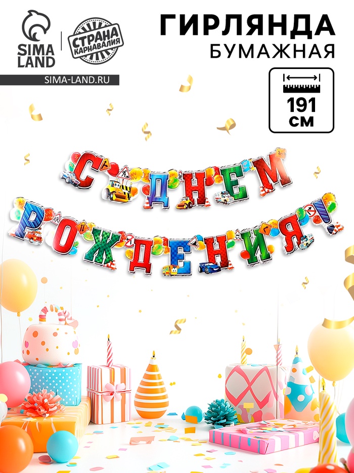 Гирлянда — прекрасный аксессуар для украшения комнаты или зала! Он станет отличным дополнением любого праздника. Буквы скреплены с помощью люверсов, что позволяет свободно трансформировать гирлянду. На лицевой стороне напечатана красочная надпись. Аксессуар легко крепится на стену или дверной проём с помощью клейкой ленты или кнопок.