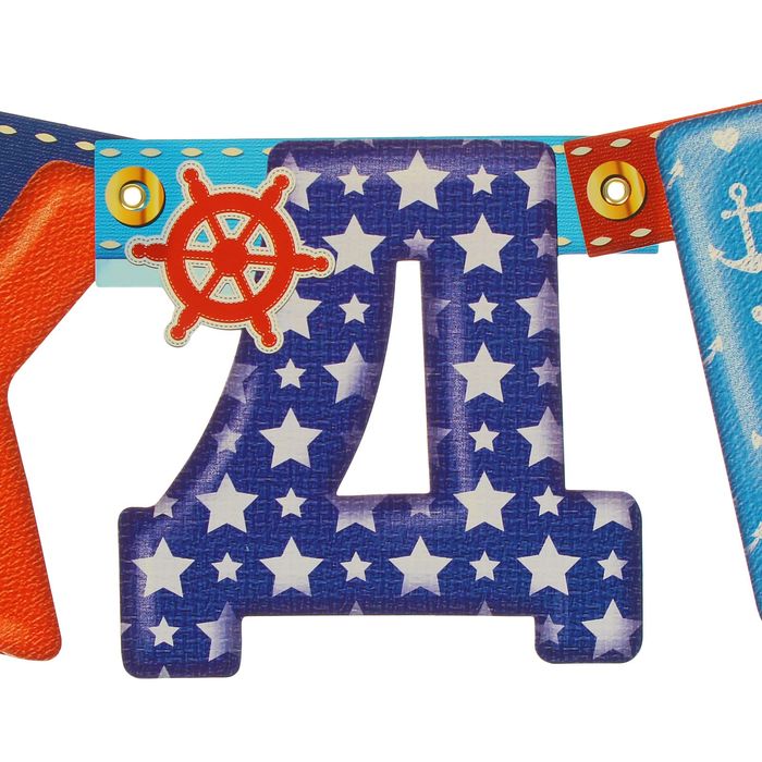 Буквы скреплены с помощью люверсов, что позволяет свободно трансформировать гирлянду. На лицевой стороне напечатана красочная надпись. Аксессуар легко крепится на стену или дверной проём с помощью клейкой ленты или кнопок.