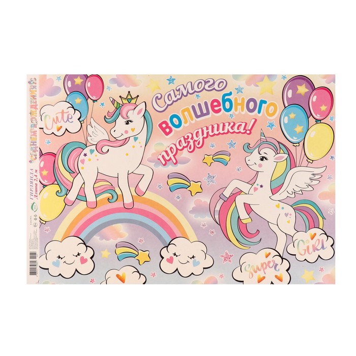 Гирлянда «С Днём Рождения!" единороги, 50×34.5 см