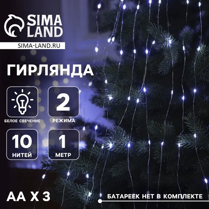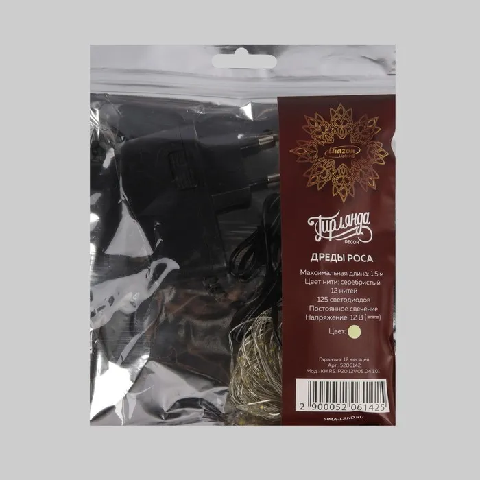 Гирлянда «Дреды» 1.5 м, IP20, серебристая нить, 125 LED, свечение тёплое белое, 12 В — Характеристики