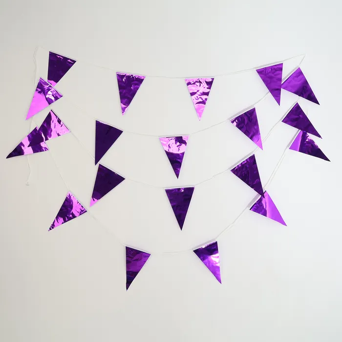 Яркая гирлянда в цвете индиго из 20 треугольных флажков станет великолепным украшением для любого праздника! Длина гирлянды составляет 10 метров, что позволяет эффектно оформить любое пространство.