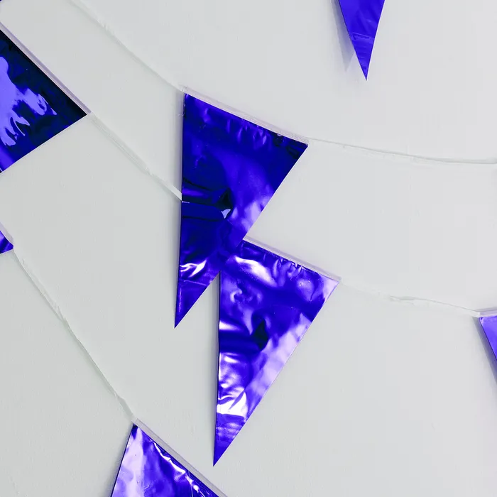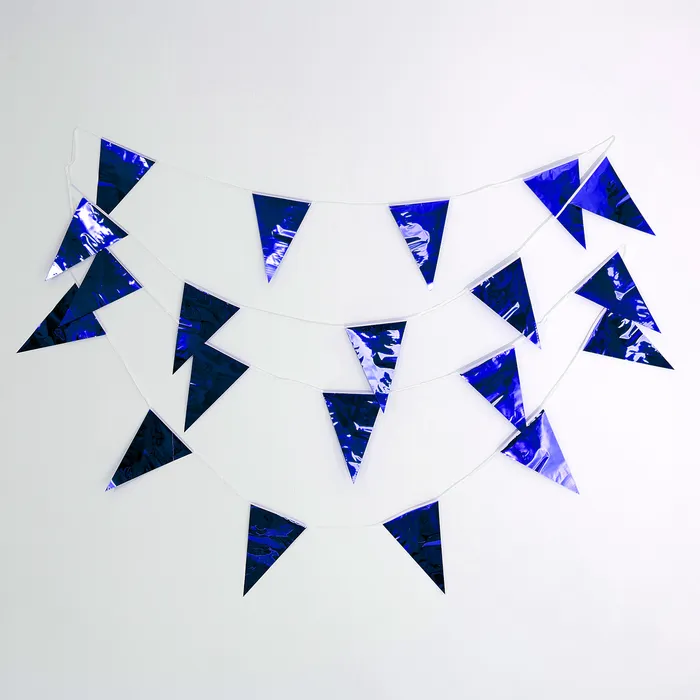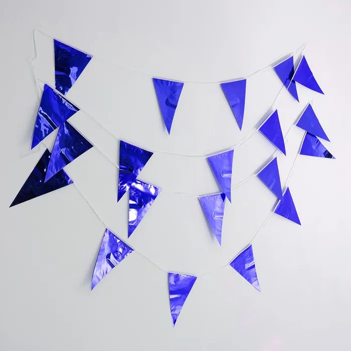 Яркая синяя гирлянда из 20 треугольных флажков станет великолепным украшением для любого праздника! Длина гирлянды составляет 10 метров, что позволяет эффектно оформить любое пространство.