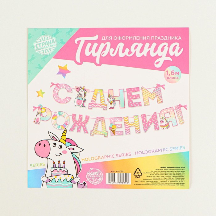 Гирлянда голография на ленте «С Днем Рождения», длина 160 см — Характеристики