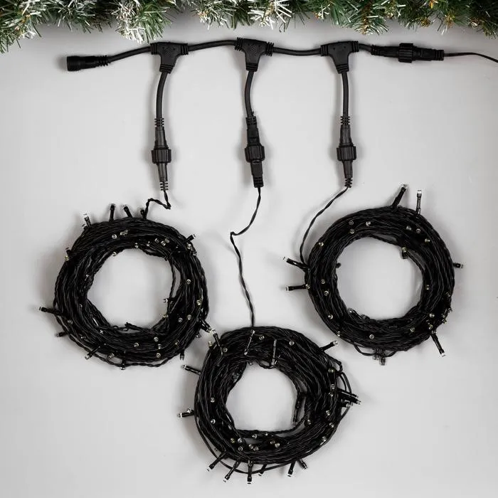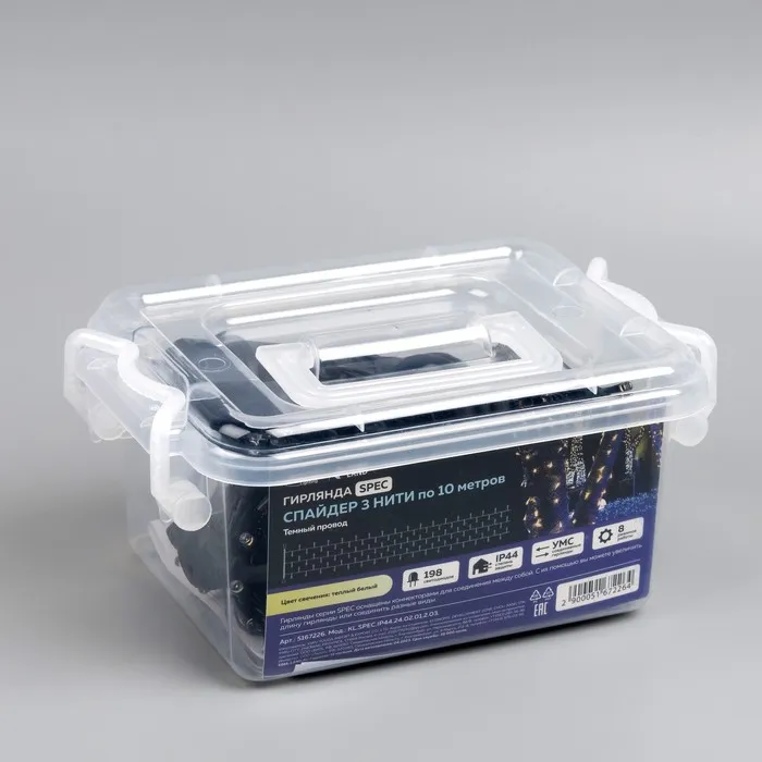 Гирлянда «Клип-лайт» 3 нити по 10 м, IP44, УМС, тёмная нить, 198 LED, свечение тёплое белое, 8 режимов, 24 В — Характеристики