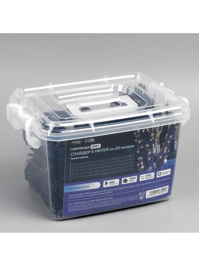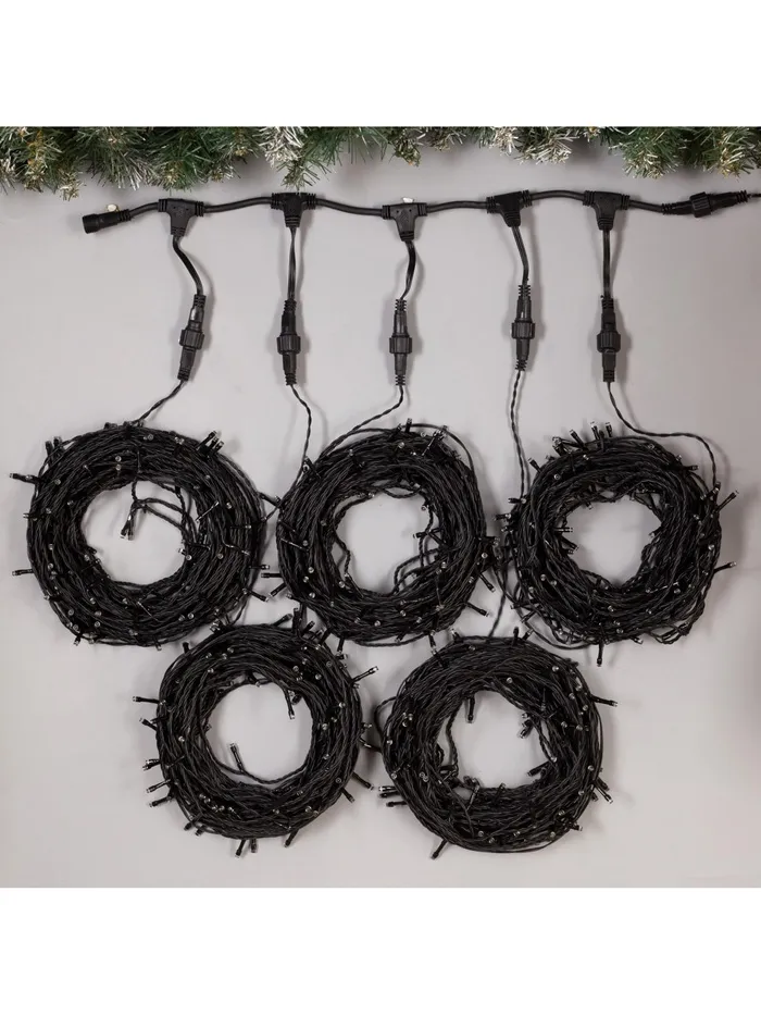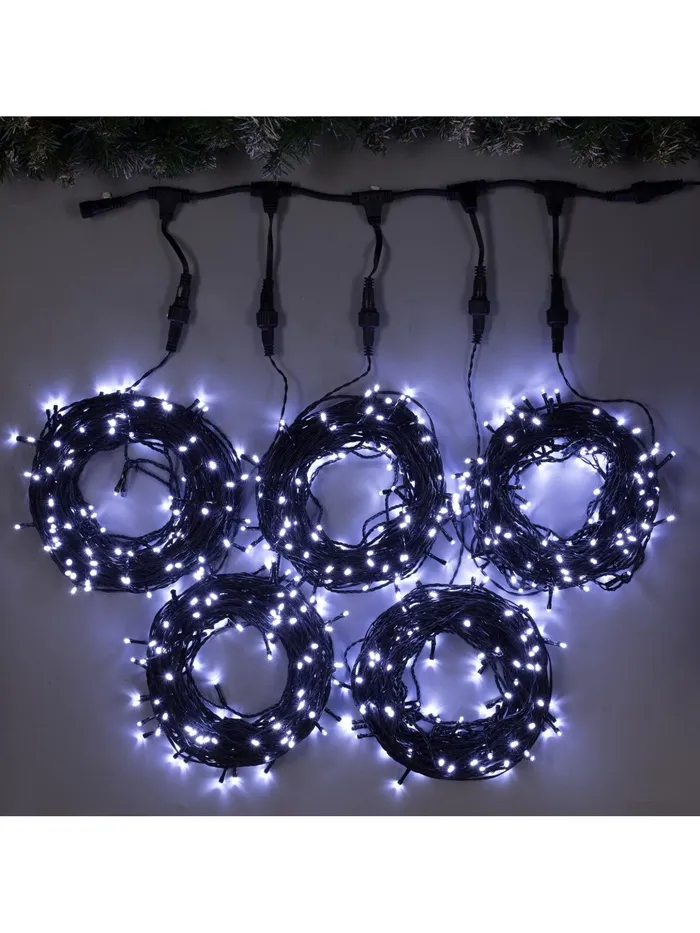 Гирлянда «Клип-лайт» 5 нитей по 20 м, IP44, УМС, тёмная нить, 665 LED, свечение белое, 24 В — Характеристики
