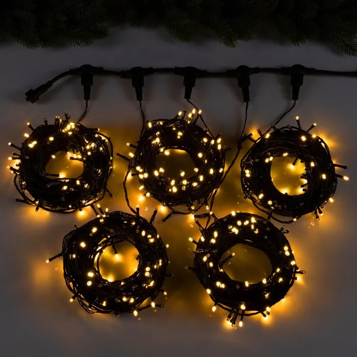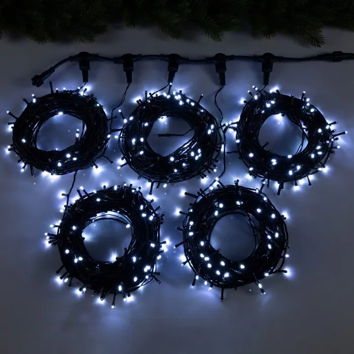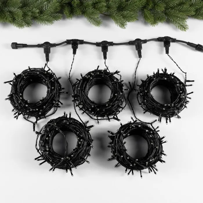 Гирлянда «Клип-лайт» 5 нитей по 20 м, IP44, УМС, тёмная нить, 665 LED, свечение белое, мерцание, 24 В