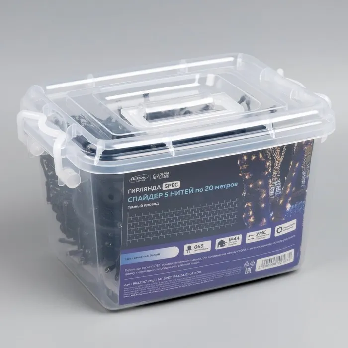 Гирлянда «Клип-лайт» 5 нитей по 20 м, IP44, УМС, тёмная нить, 665 LED, свечение белое, мерцание всех светодиодов, 24 В — Характеристики