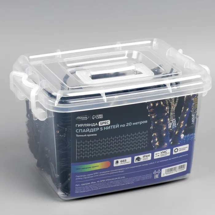 Гирлянда «Клип-лайт» 5 нитей по 20 м, IP44, УМС, тёмная нить, 665 LED, свечение мульти, 24 В — Характеристики