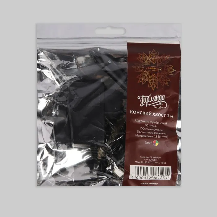 Гирлянда «Конский хвост» 10 нитей по 1 м, IP20, серебристая нить, 100 LED, свечение мульти, 12 В — Характеристики