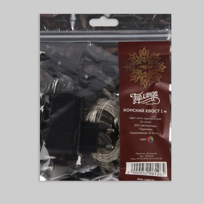 Гирлянда «Конский хвост» 10 нитей по 1 м, IP20, серебристая нить, 100 LED, свечение мульти (RGB), переливы, 12 В — Характеристики