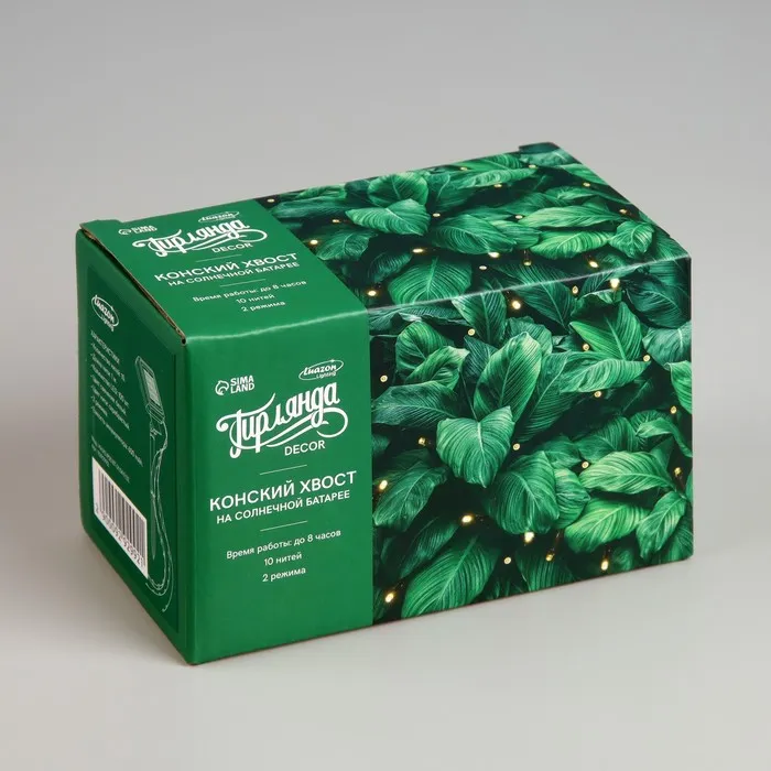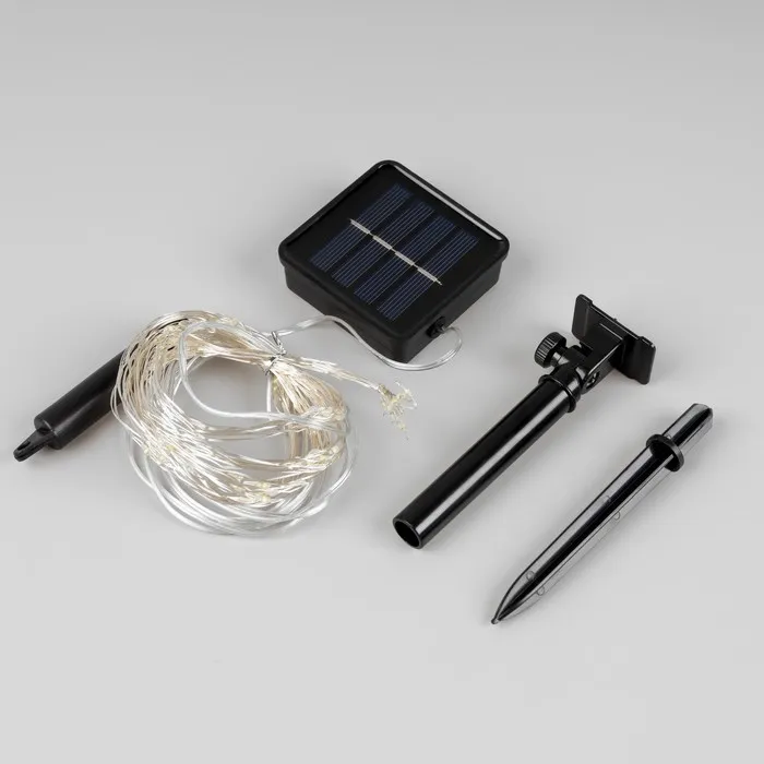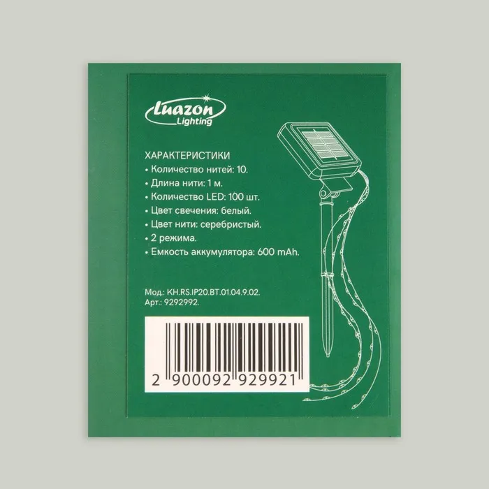 Гирлянда «Конский хвост» 10 нитей по 1 м, серебристая нить, 100 LED, свечение белое, 2 режима, солнечная батарея — Характеристики