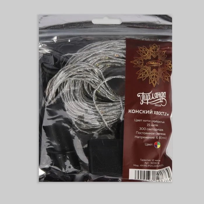 Гирлянда «Конский хвост» 15 нитей по 2 м, IP20, серебристая нить, 300 LED, свечение мульти, 220 В — Характеристики