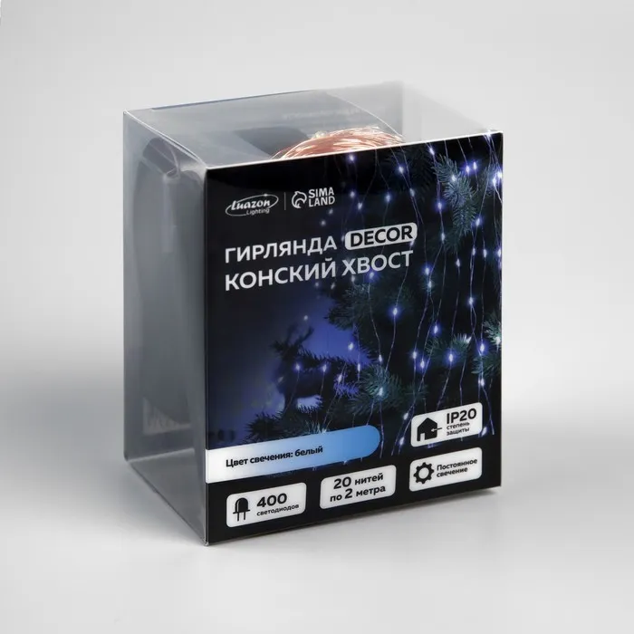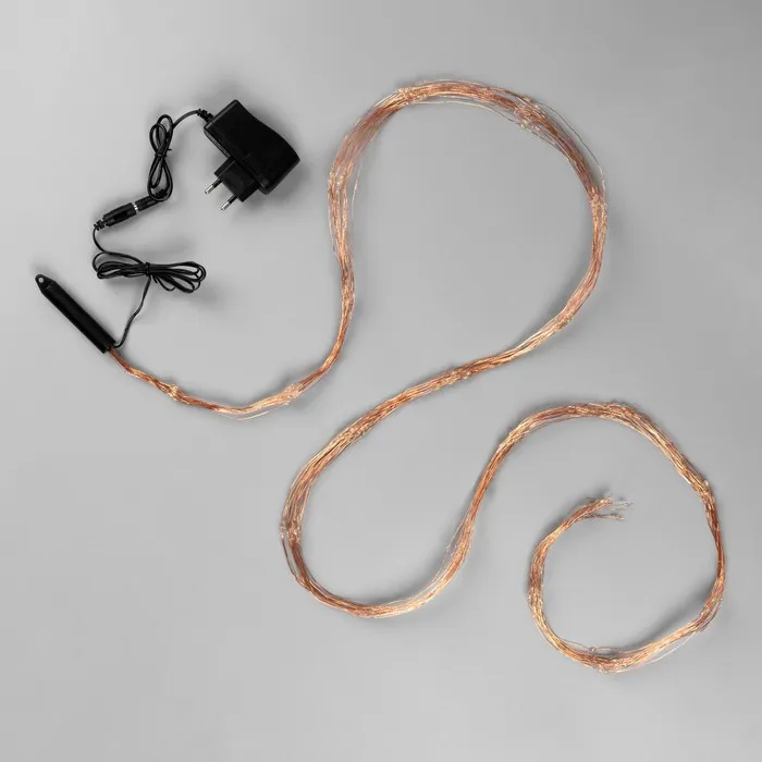 Гирлянда «Конский хвост» 20 нитей по 2 м, нить медная, 400 LED, 12 В, блок питания в комплекте, фиксинг, свечение белое — Характеристики