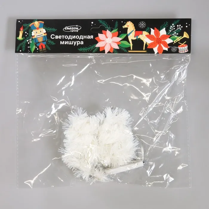 Гирлянда «Мишура» 1 м роса, IP20, белая нить, 22 LED, 8 слоёв, d=3 см, свечение белое, CR2032х2 — Характеристики