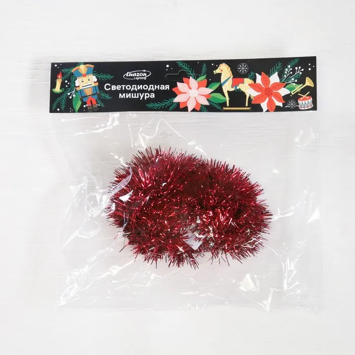 Гирлянда «Мишура» 1 м роса, IP20, красная нить, 22 LED, 6 слоёв, d=7 см, батарейки CR2032х2 (в комплекте), свечение белое — Характеристики