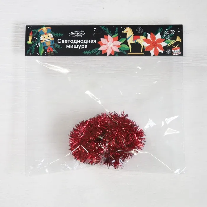 Гирлянда «Мишура» 1 м роса, IP20, красная нить, 22 LED, 8 слоёв, d=3 см,батарейки CR2032х2 (в комплекте), свечение белое — Характеристики