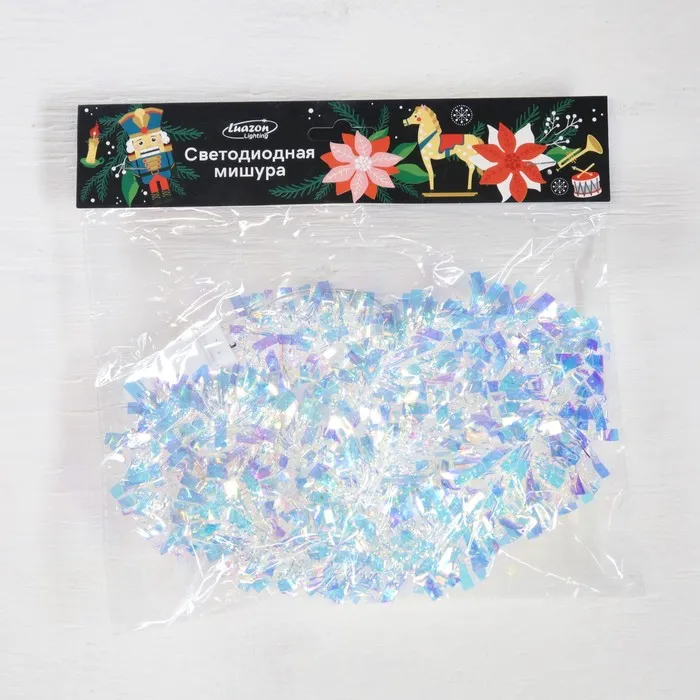Гирлянда «Мишура» 1 м роса, IP20, перламутровая нить, 22 LED, 6 слоёв, d=5 см, батарейки CR2032х2 (в комплекте), свечение белое — Характеристики