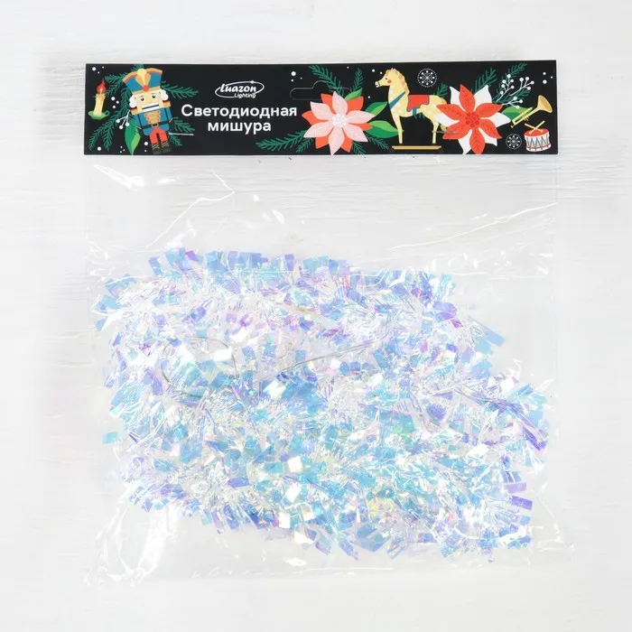 Гирлянда «Мишура» 1 м роса, IP20, перламутровая нить, 22 LED, 6 слоёв, d=5 см, батарейки CR2032х2 (в комплекте), свечение тёплое белое — Характеристики
