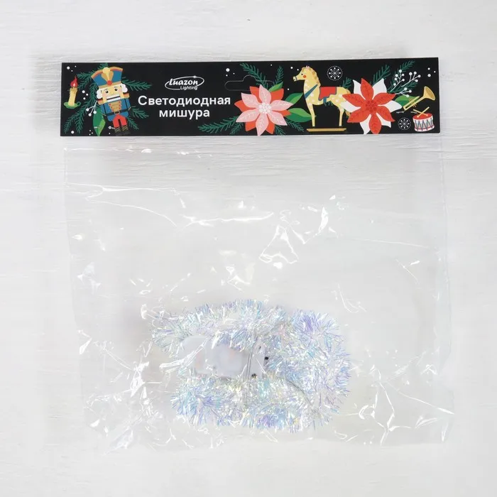 Гирлянда «Мишура» 1 м роса, IP20, перламутровая нить, 22 LED, 8 слоёв, d=3 см, батарейки CR2032х2 (в комплекте), свечение белое — Характеристики