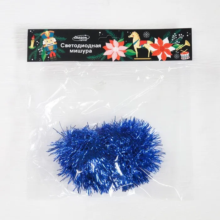 Гирлянда «Мишура» 1 м роса, IP20, синяя нить, 22 LED, 6 слоёв, d=7 см, батарейки CR2032х2 (в комплекте), свечение белое — Характеристики