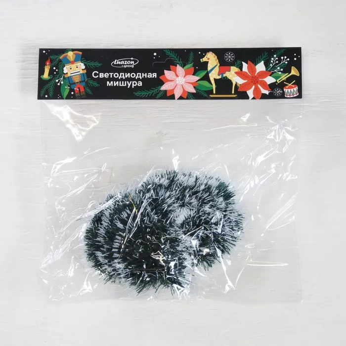 Гирлянда «Мишура» 1 м роса, IP20, зелёно-белая нить, 22 LED, 6 слоёв, d=7 см, свечение мульти, CR2032х2 — Характеристики