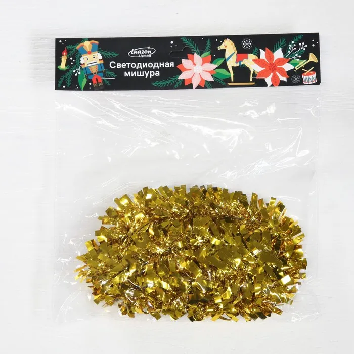 Гирлянда «Мишура» 1 м роса, IP20, золотистая нить, 22 LED, 6 слоёв, d=5 см, батарейки CR2032х2 (в комплекте), свечение тёплое белое — Характеристики