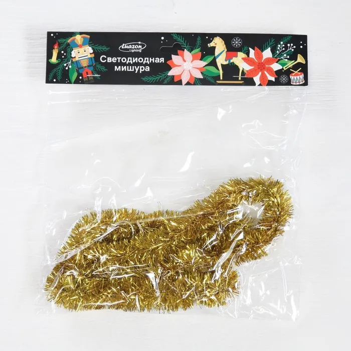 Гирлянда «Мишура» 1 м роса, IP20, золотистая нить, 22 LED, 8 слоёв, d=3 см, батарейки CR2032х2 (в комплекте), свечение тёплое белое — Характеристики