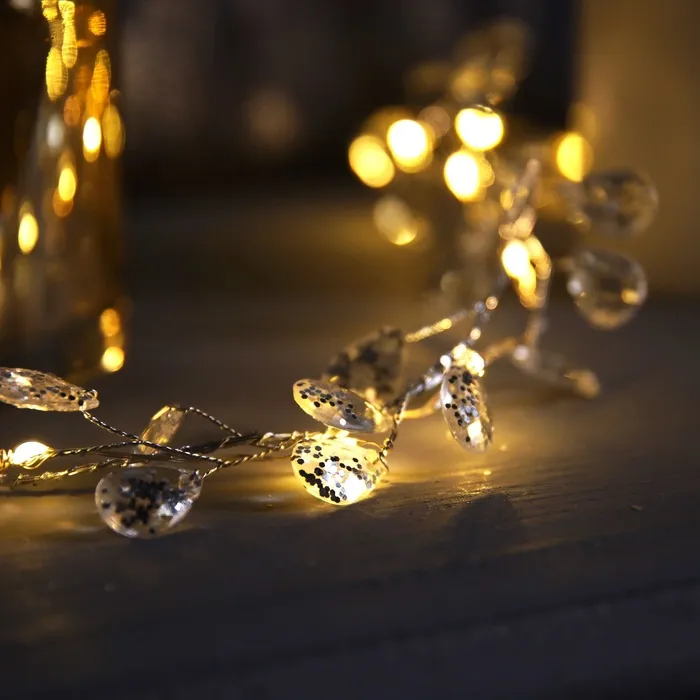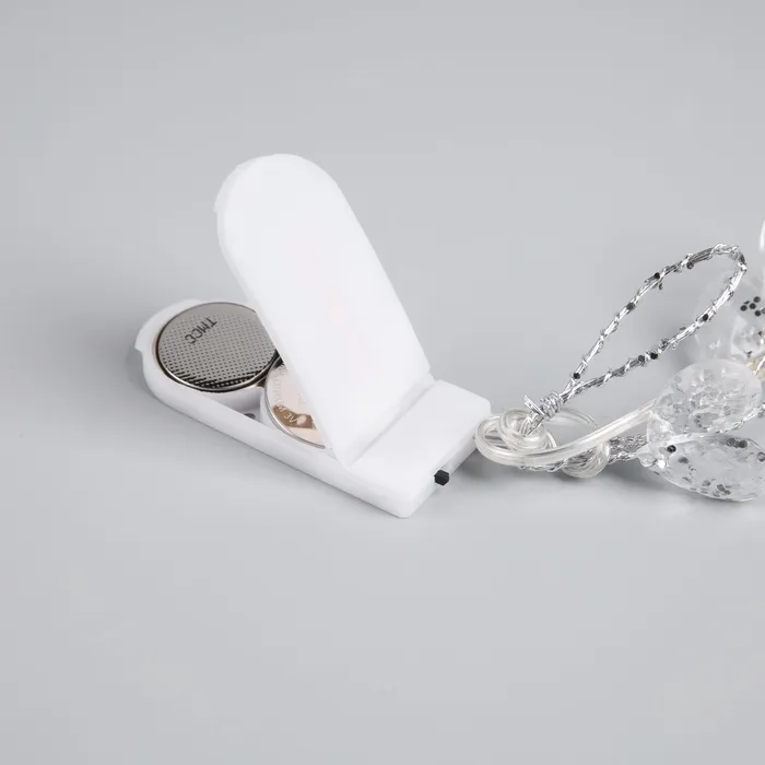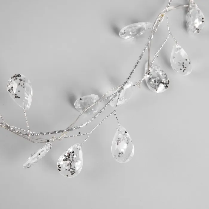 Гирлянда «Мишура» 1.2 м роса с насадками «Кристаллы», IP20, серебристая нить, 20 LED, батарейки CR2032х2 (в комплекте), свечение тёплое белое — Характеристики