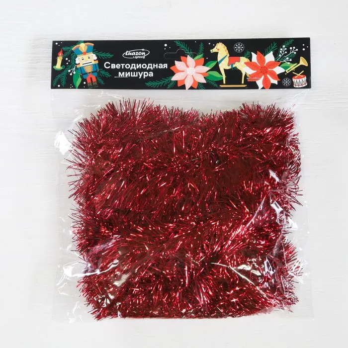 Гирлянда «Мишура» 2 м роса, IP20, красная нить, 44 LED, 6 слоёв, d=7 см, свечение белое, ААх2 — Характеристики