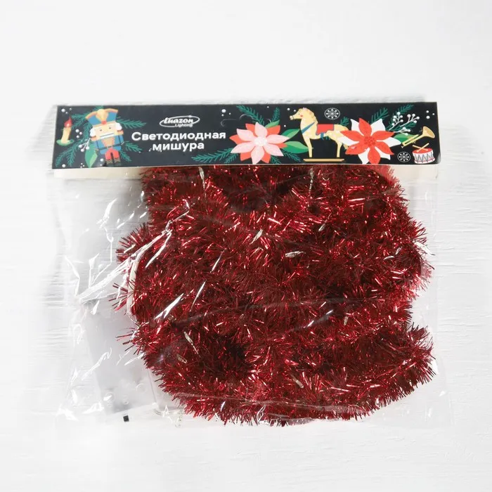 Гирлянда «Мишура» 2 м роса, IP20, красная нить, 44 LED, 8 слоёв, d=3 см, свечение белое, ААх2 — Характеристики
