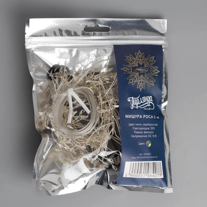 Гирлянда «Мишура» 2 м роса, IP20, серебристая нить, 200 LED, свечение мульти, 12 В — Характеристики