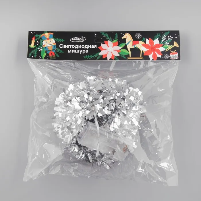 Гирлянда «Мишура» 2 м роса, IP20, серебристая нить, 44 LED, 6 слоёв, d=5 см, свечение белое, ААх2 — Характеристики