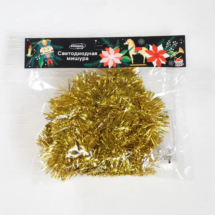 Гирлянда «Мишура» 2 м роса, IP20, золотистая нить, 44 LED, 6 слоёв, свечение тёплое белое, ААх2 — Характеристики