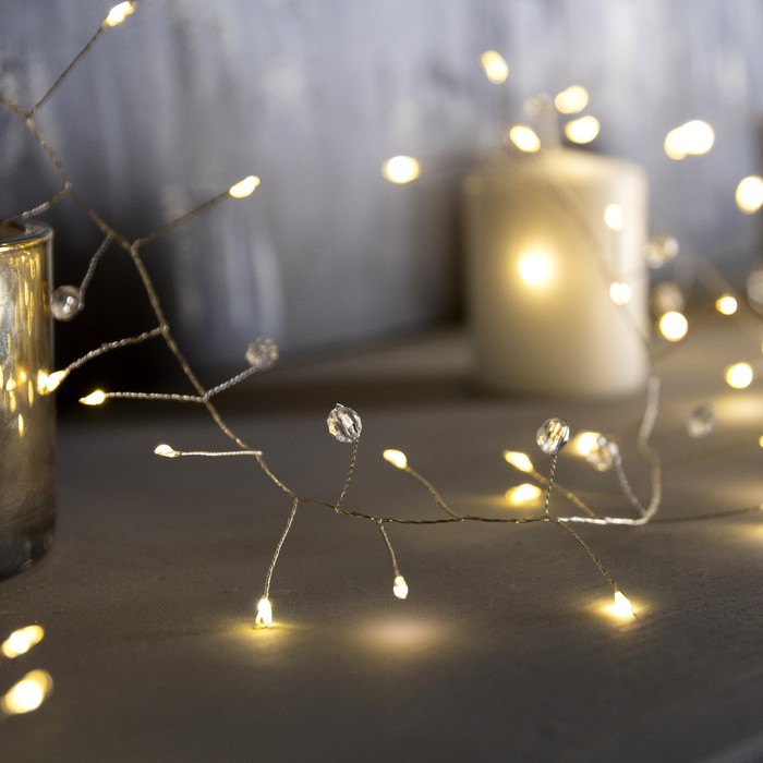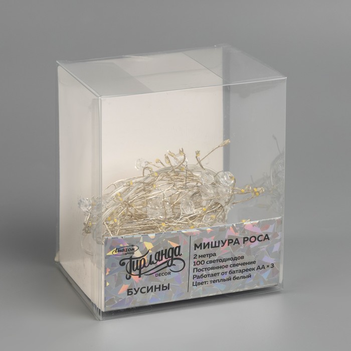 Гирлянда «Мишура» 2 м роса с насадками «Бусины», IP20, серебристая нить, 100 LED, батарейки ААх3 (нет в комплекте), свечение тёплое белое — Характеристики