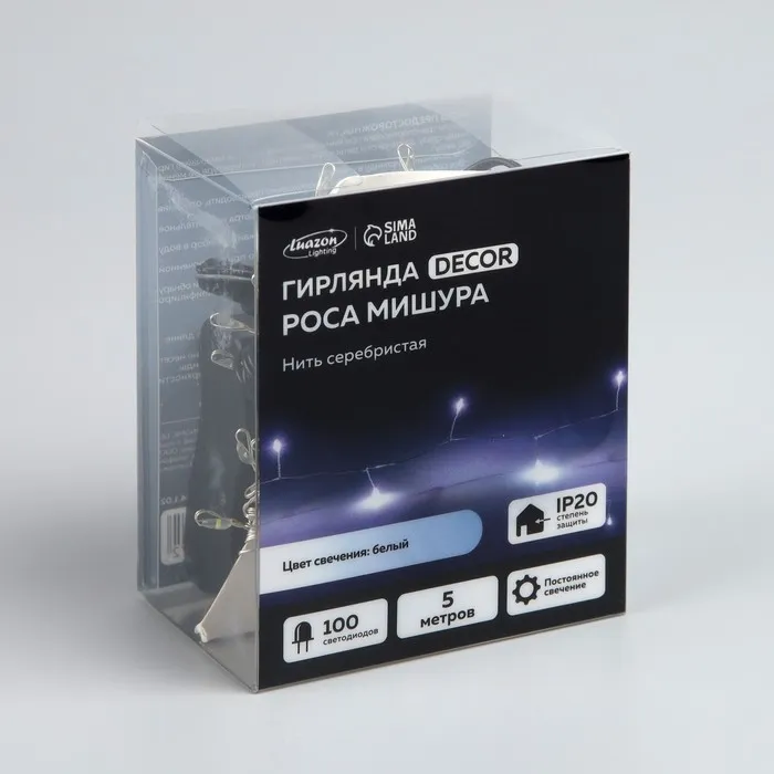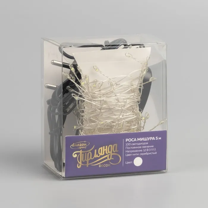 Гирлянда «Мишура» 5 м роса, IP20, серебристая нить, 100 LED, свечение белое, 12 В — Характеристики